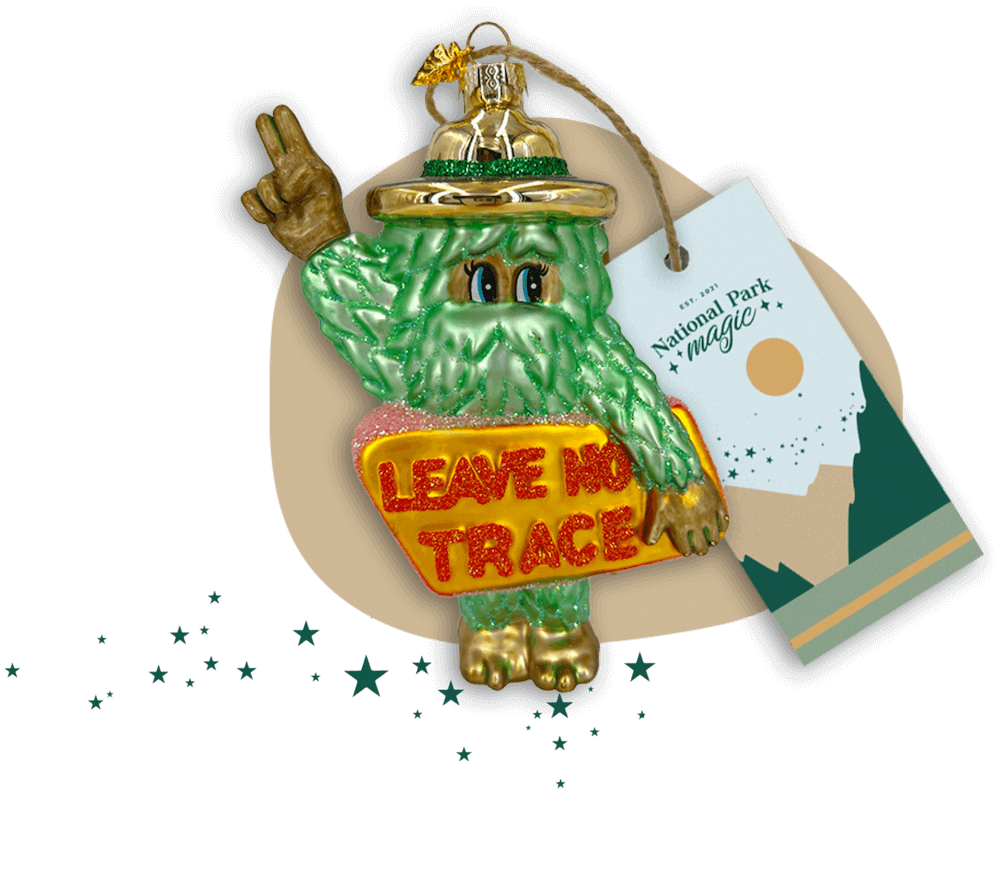 Sasquatch Says: ‘Leave No Trace!’ Adorned with a Park Ranger hat, our whimsical big foot playfully reminds us of the National Park’s sacred motto. This National Park Magic ornament encapsulates a fun yet powerful message - explore, enjoy, but leave nature untouched. Perfect for all wilderness lovers, it’s not just an ornament, it’s a commitment to preserving the magic of our national parks.